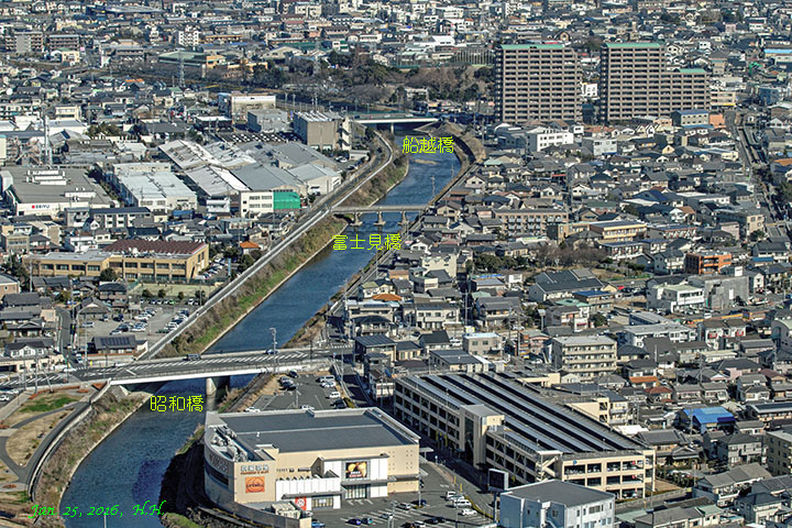 これらの橋の4kmほど南西側の高台に位置する染地台、半田山から見ると納得できます。