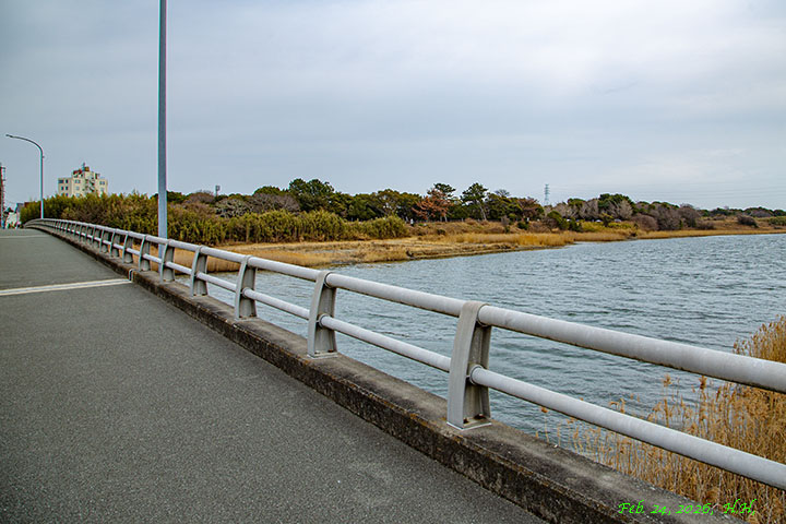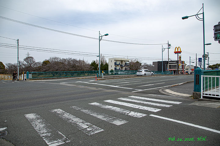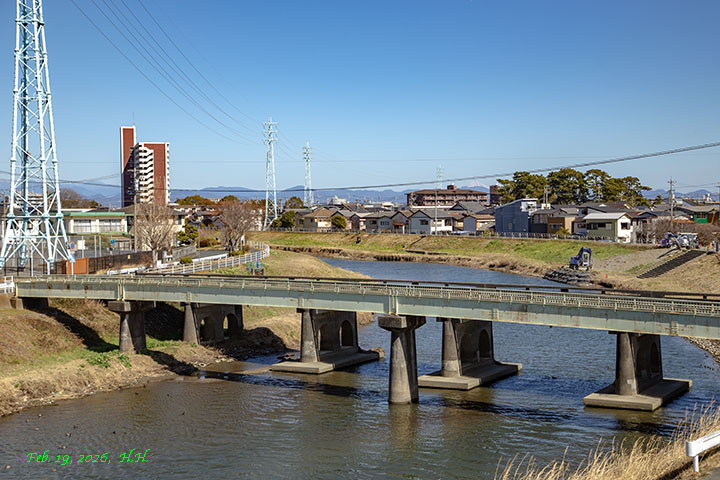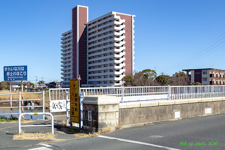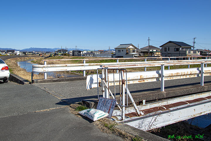 2026年2月19日、真光寺前橋から見た天王橋と運転免許センターの建物