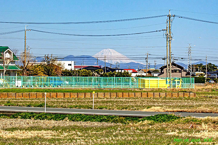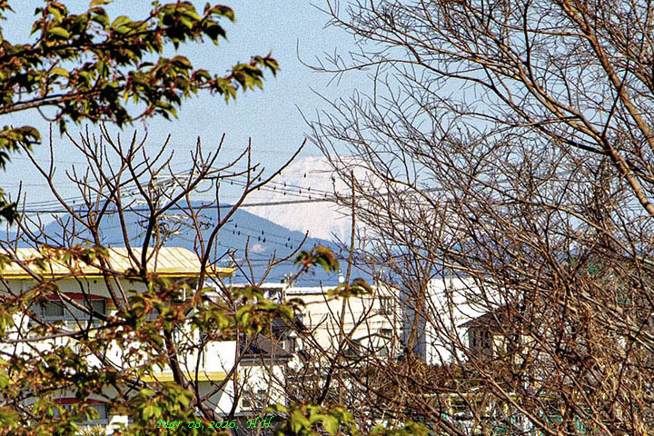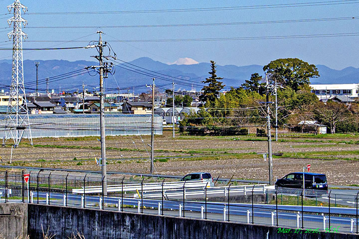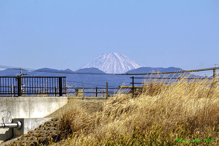 2015年3月26日、南岸の川沿いの道から見た富士山です。