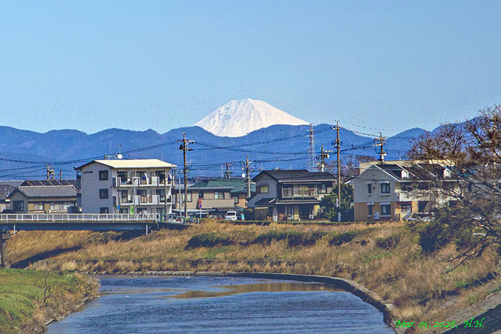 馬込川に架かる橋から見る富士の風景