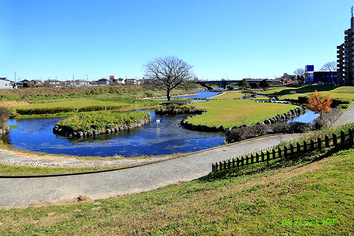 堤防には桜並木や緑地公園もあり、市民の身近な散歩道になっています。
