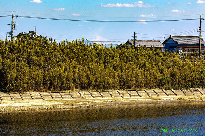 2021年5月、中田島町の防潮堤遊歩道の馬込川西岸部から