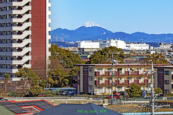 2026年2月、県営住宅の階段から楊子橋越えに見えた富士山