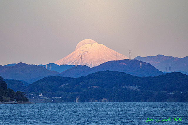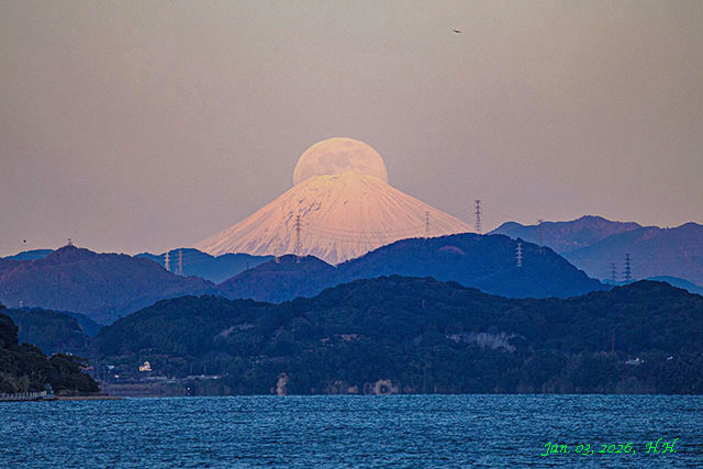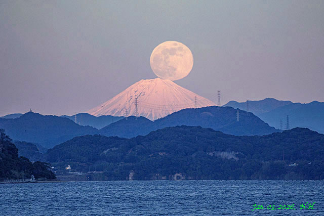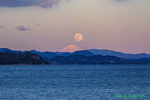 浜名湖西岸より見る富士山からの月の出の風景、その4