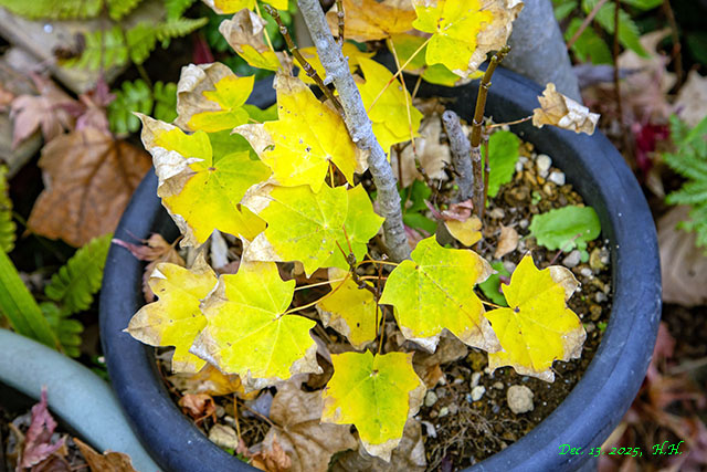 以下、13日の植木鉢カエデの紅葉です。