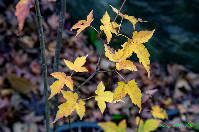 12月中旬、13日と15日の紅葉したカエデを紹介します。