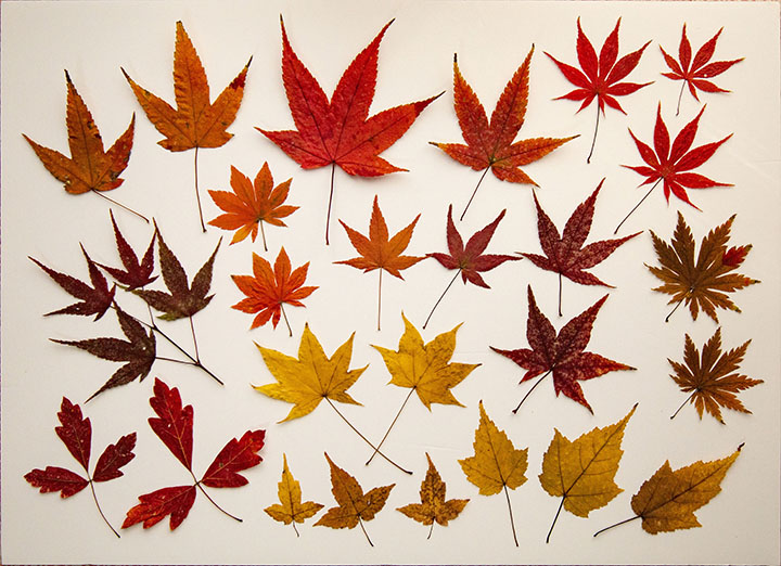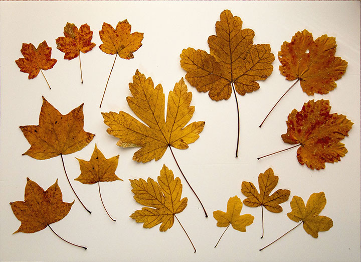 次に、昨年の秋、鮮やかな紅葉・黄葉を見せてくれた我が家の庭のカエデの葉を