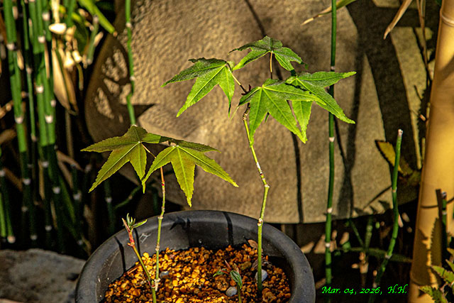 次は、昨年発芽したイロハカエデの2年目の萌芽です。