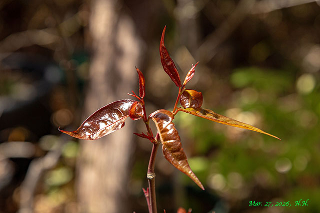 春の出葉時に鮮やかな赤い新葉を見せてくれます。