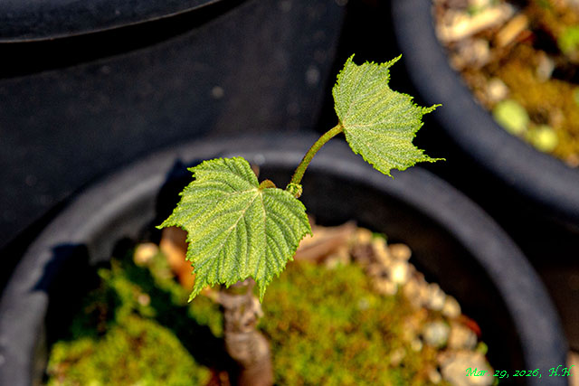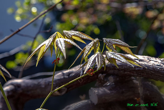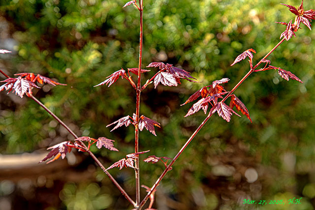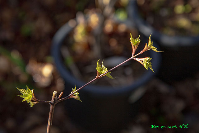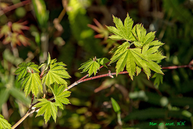 26, 27, 29日の自宅庭のカエデたちも新しい葉を出し始めています。