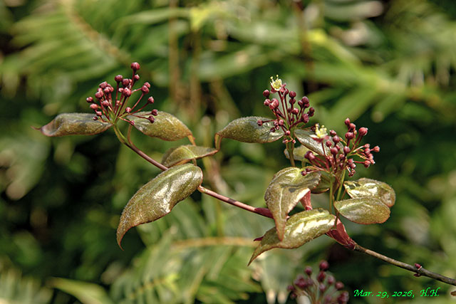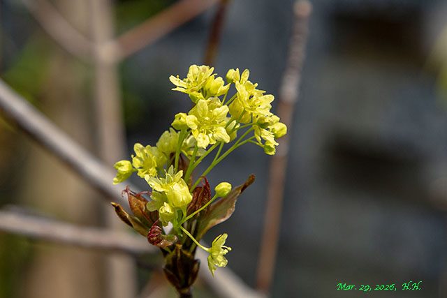 タイワントウカエデの花と新葉、別名、宮様カエデ