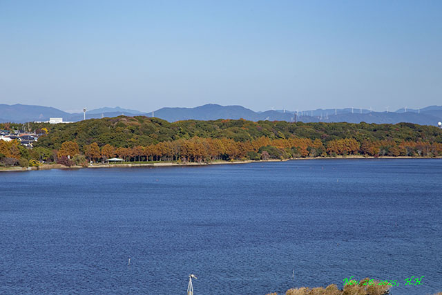 佐鳴湖南岸の六所神社北側の高台から見る西岸のメタセコイアの風景2
