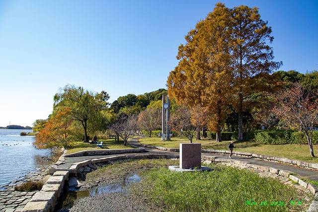 次に、佐鳴湖西岸の時計台のある東屋まで来ました。