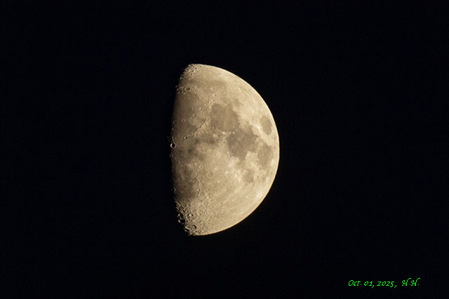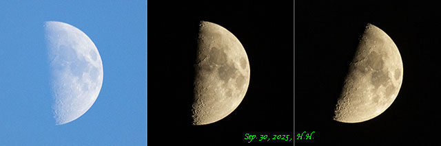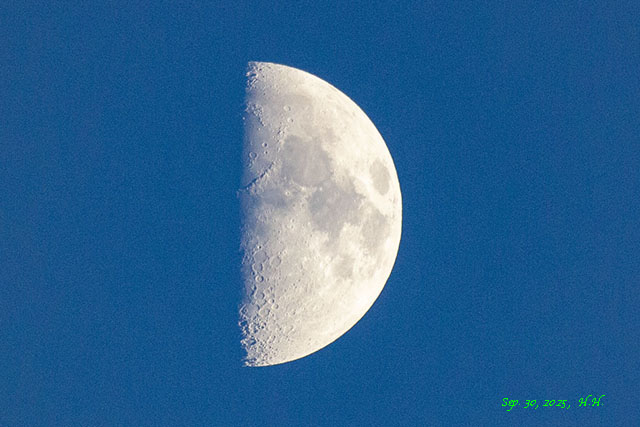 9月30日の上弦の月の頃、月の出時刻がお昼前だったのが、