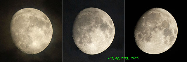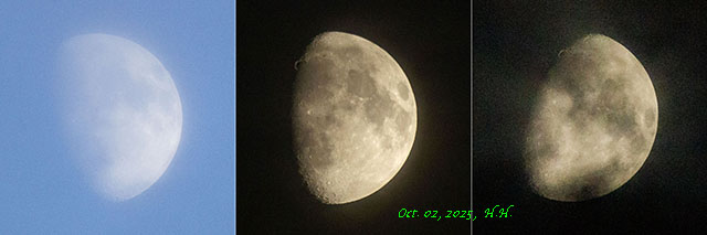 左;午後3時54分頃、中;午後6時58分(南中時)、右;午後10時05分頃
