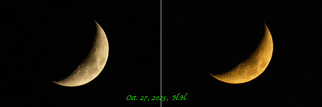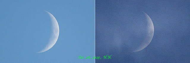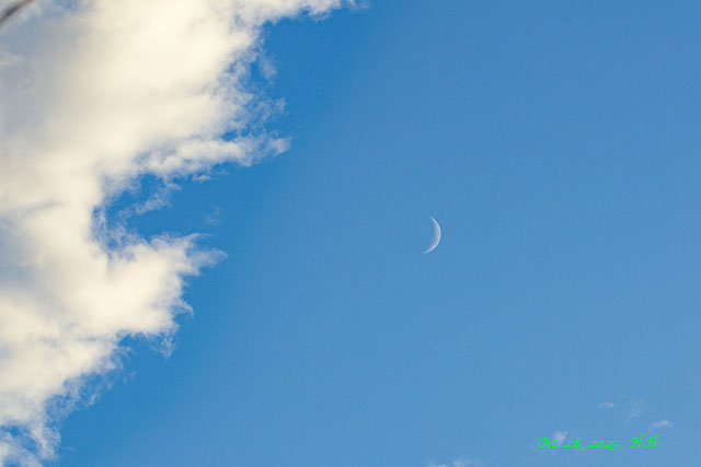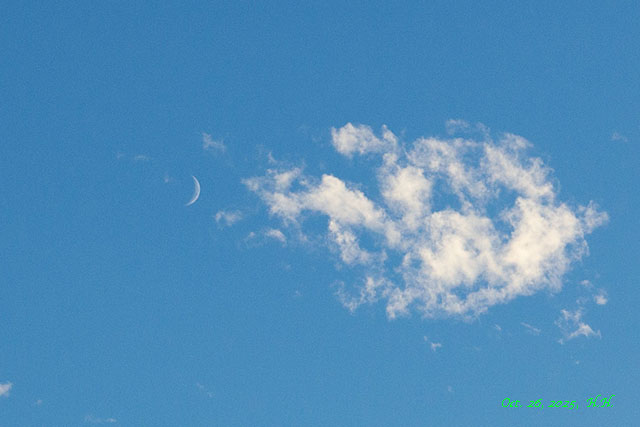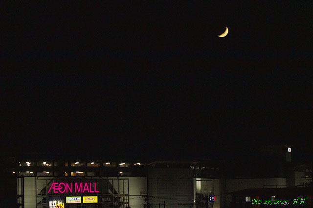 夕方は西空に薄い雲片が流れており、この時間、月齢 1.8くらいの二日月ほどの