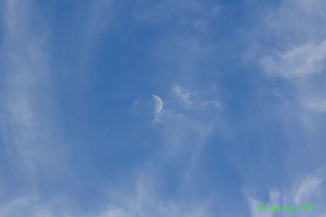 午後4時09分頃、薄雲の間から見え始めた九日月