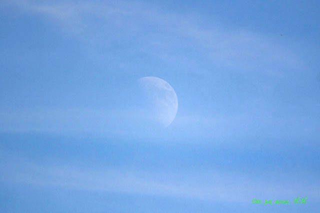 月の出から2時間後のお昼の午後0時38分頃、東南の空に見え始めました。