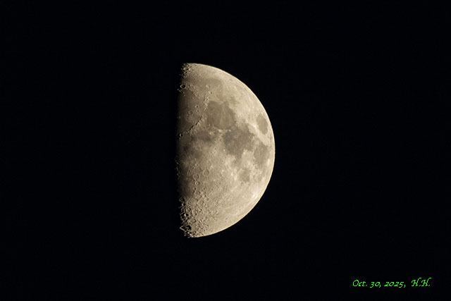10月30日未明の午前1時過ぎに地球の裏で上弦の月になりました。