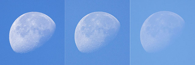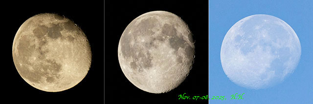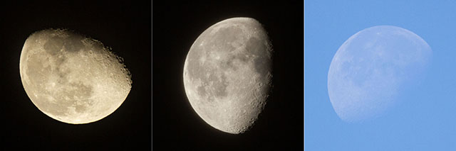 左;午後8時25分頃、中;7日未明の午前0時32分頃、右;午前5時40分頃