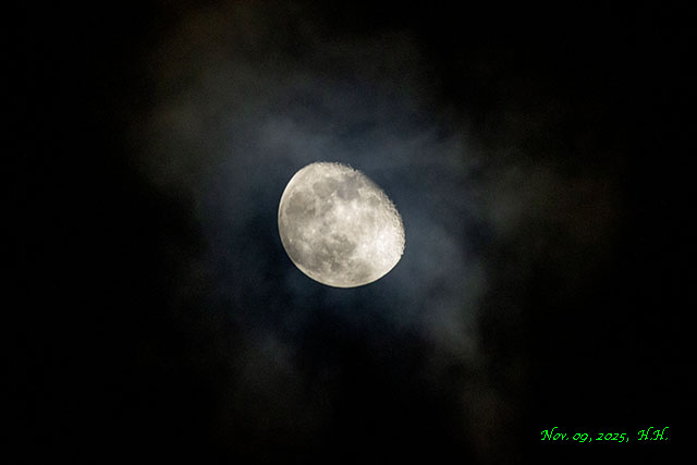 11日午前7時56分頃の村雲の中を逍遥するお月さま