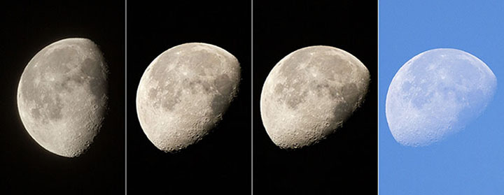 左から、10日午前3時48分頃、午前4時48分頃、午前5時48分頃、午前7時48分頃
