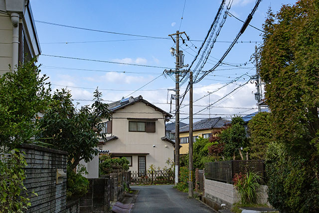 自宅前のこの道は、真西より 16.5度北側を向いています。