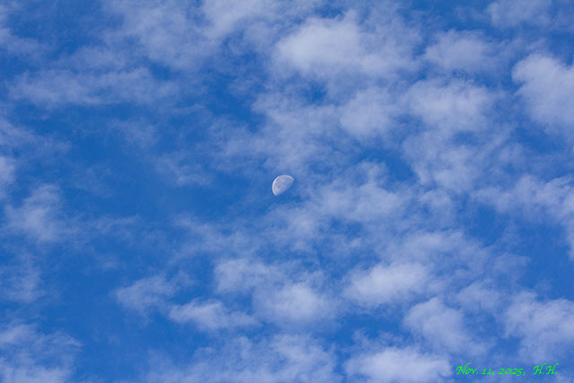 次は、西空に雲が広がり出して、今日見えた最後のお月さまです。