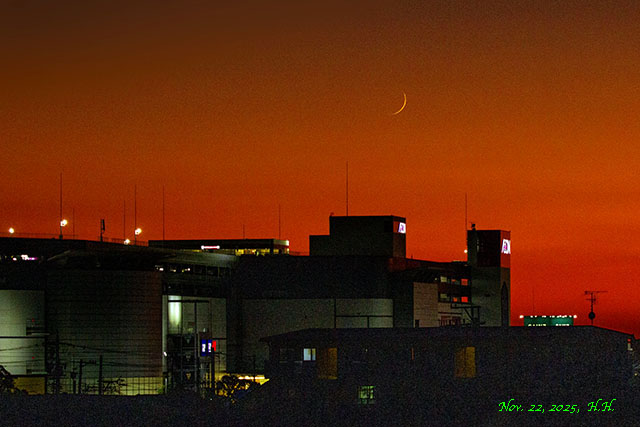今日は、日没時刻が午後4時42分で、月の入りまで1時間ほどありましたので、