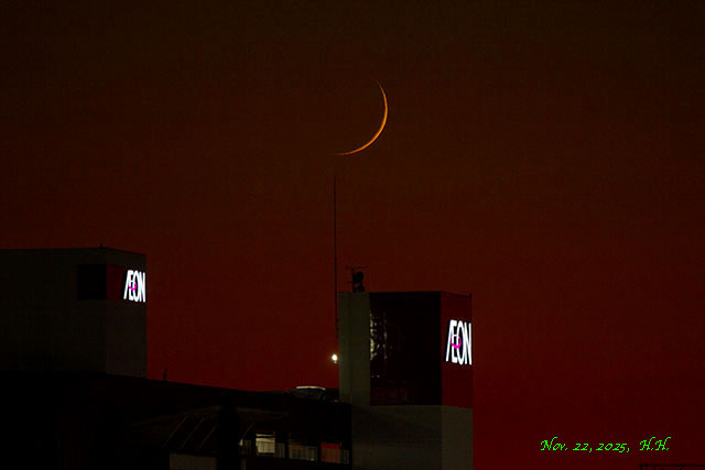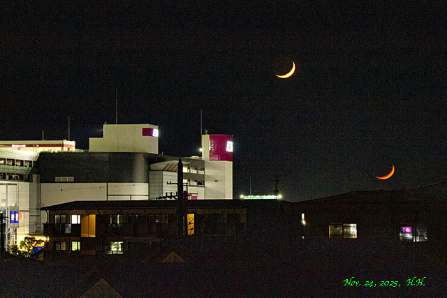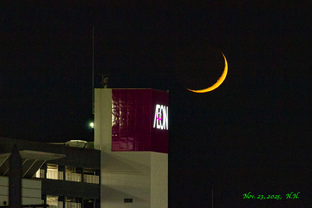また、月齢数値が二日月ほどで、超細い三日月でした。