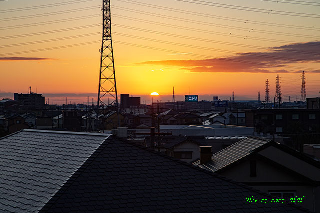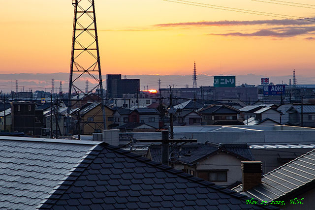11月23日午前6時34分頃、浜松市西鴨江町の薬蔵坂から見た日の出の風景