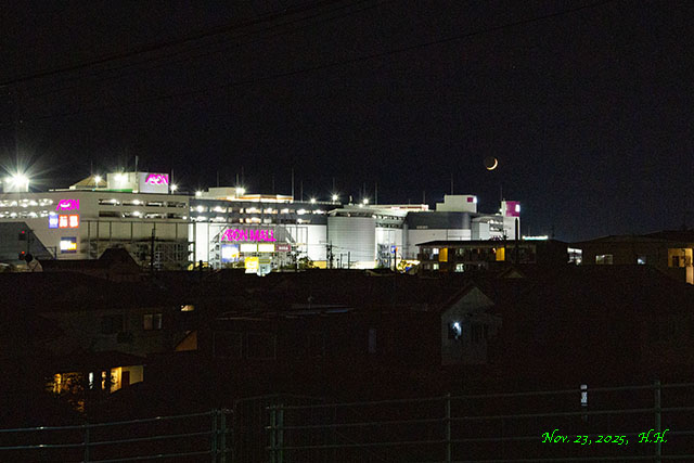 午後6時19分頃、イオンモールに最接近の四日月の風景