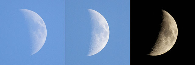 左;午後4時25分頃、中;午後5時43分頃、右;午後7時09分頃