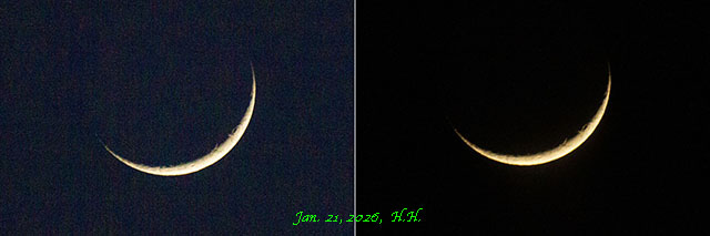 午後6時14分頃の四日月の地球照