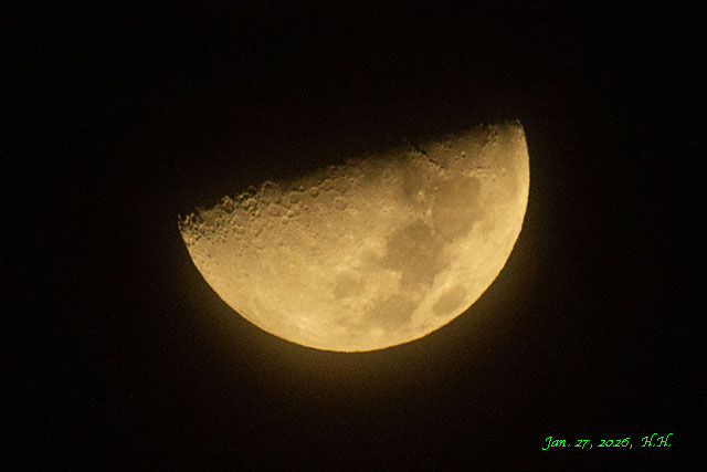 冬至から1ヶ月経過しましたが、冬至の頃の上弦の月の見え方が残っています。