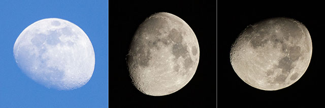左;午後4時29分、中;午後6時41分、右;午後10時21分