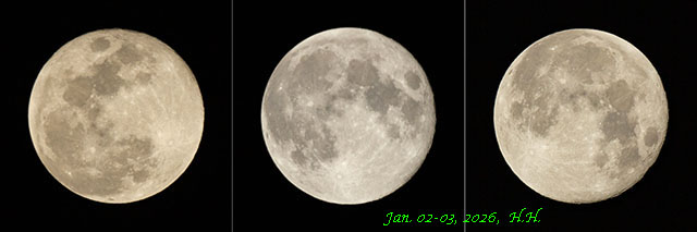 左;午後6時28分頃、中;午後11時26分頃、右;2月1日午前3時55分頃