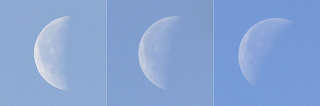 左;午前5時56分頃、中;午前6時40分頃、右;午前8時12分頃
